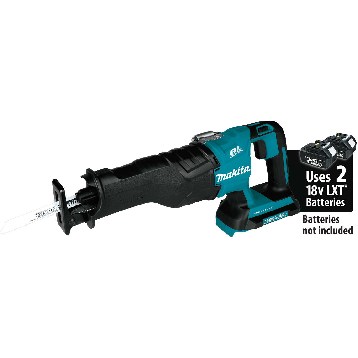 Makita, a pioneer in brushless motor technology and battery innovation, combines both in the 36V (18V X2) LXT® Brushless Recipro Saw Kit. It’s powered by two 18V Lithium-Ion batteries (sold separately) for 36V power and performance, and has an electronically-controlled BL™ Brushless motor that matches torque and RPM to the application. Makita 18V X2 means freedom from the cord, even for demanding applications like cutting and demolition that traditionally called for a corded recipro saw. Best of all, users can remain in one battery platform, using the same fast-charging 18V batteries on the XRJ06Z as they use across the Makita 18V LXT® cordless tool line-up.